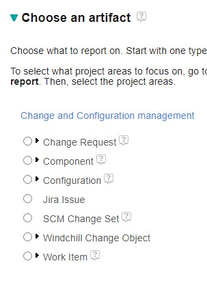 When configured correctly, creating a report will naturally offer Jira (or Windchill) artifacts for performing reports. When correctly configured, a user should see these artifacts as selectable options.